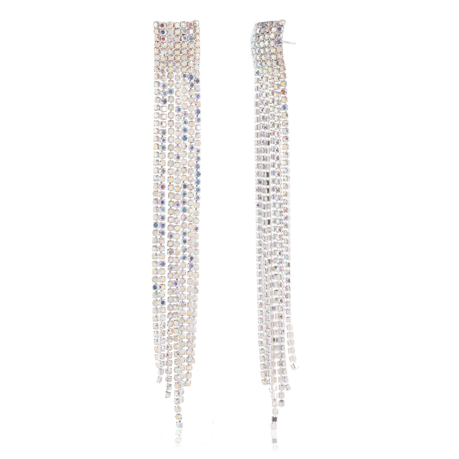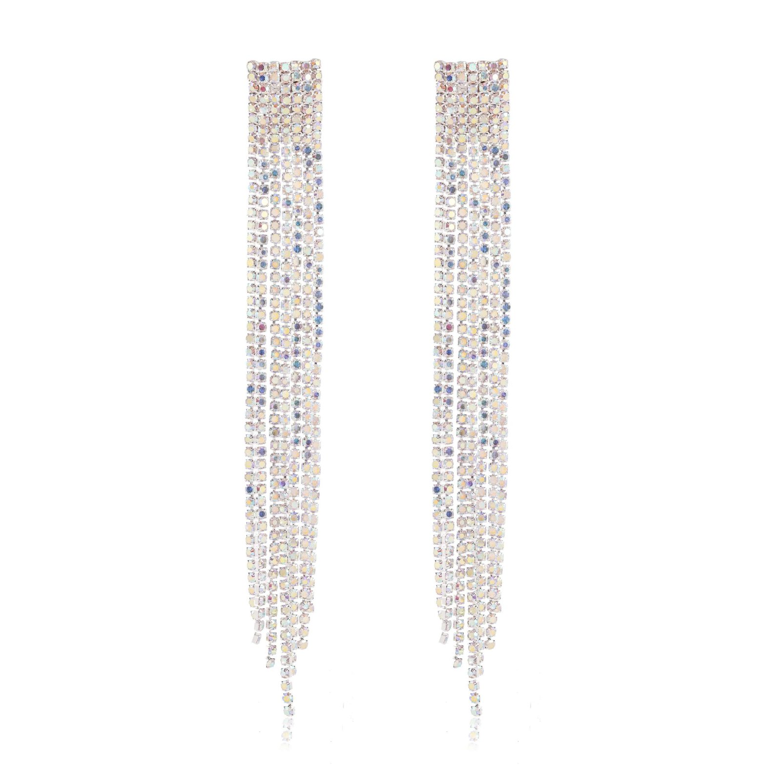 Women’s Silver Circle Long Three Rhinestone Unique Western Earrings for Women Party Wear